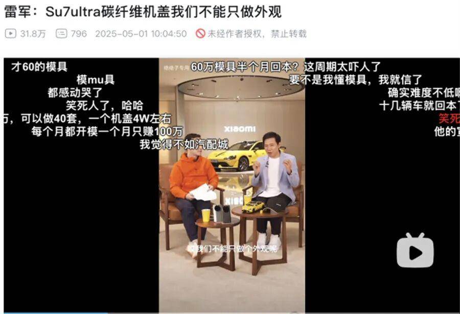到了2025年,雷军却不得不频繁出面:为锁马力道歉、为碳纤维机盖争议发声、为黑公关站台、为车主被网暴喊话。在9月的年度演讲后,他甚至直接表示:“小米汽车成为全网被黑得最惨的车企之一。”